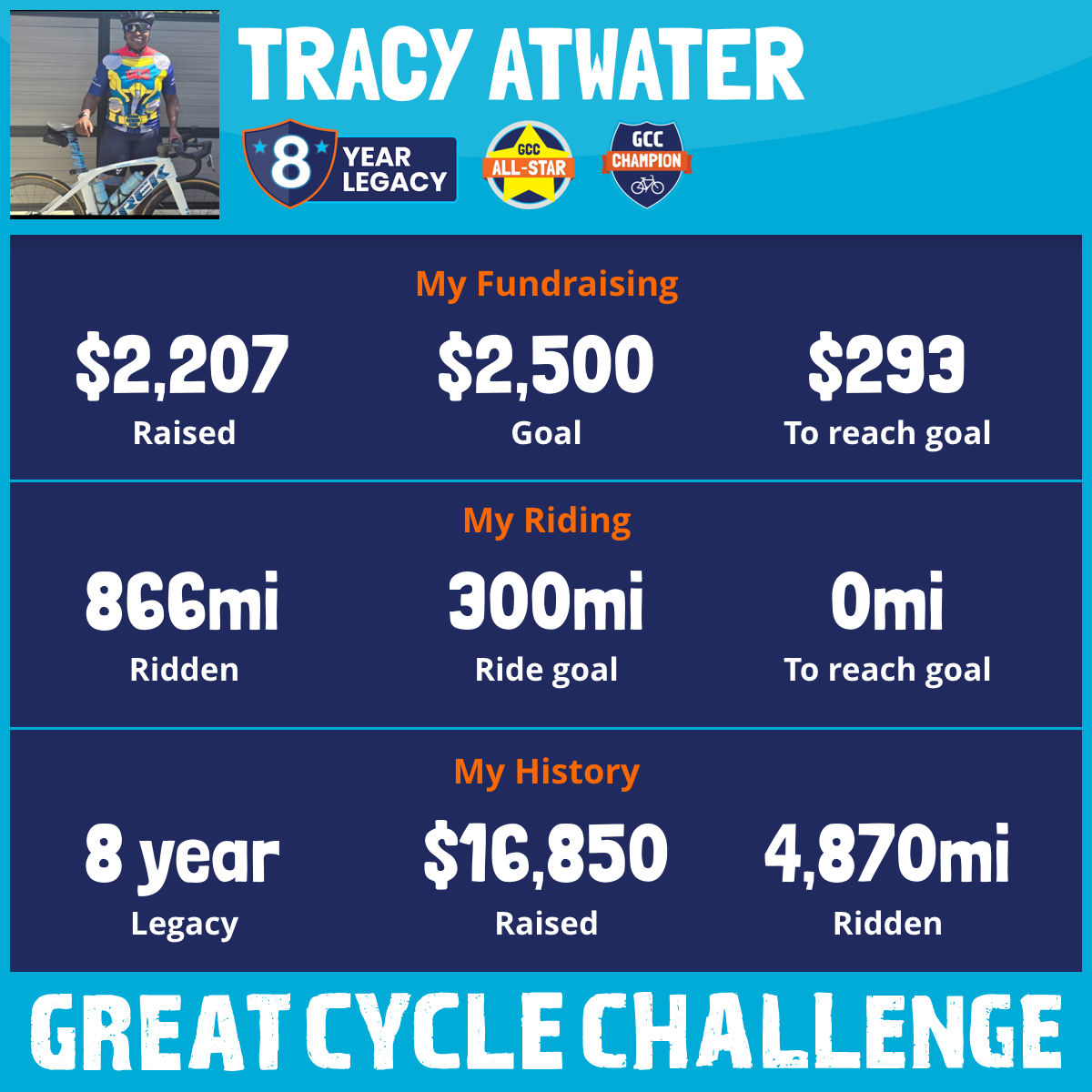 I am riding 300 mi in memory of All of the kids fighting this horrible disease!. Please sponsor me and support my challenge to fight kids' cancer and save little lives.