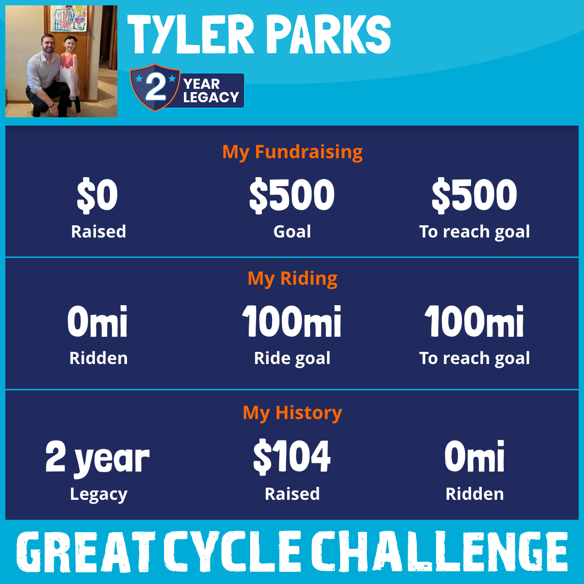 I am riding 100 mi for Sawyer. Please sponsor me and support my challenge to fight kids' cancer and save little lives.
