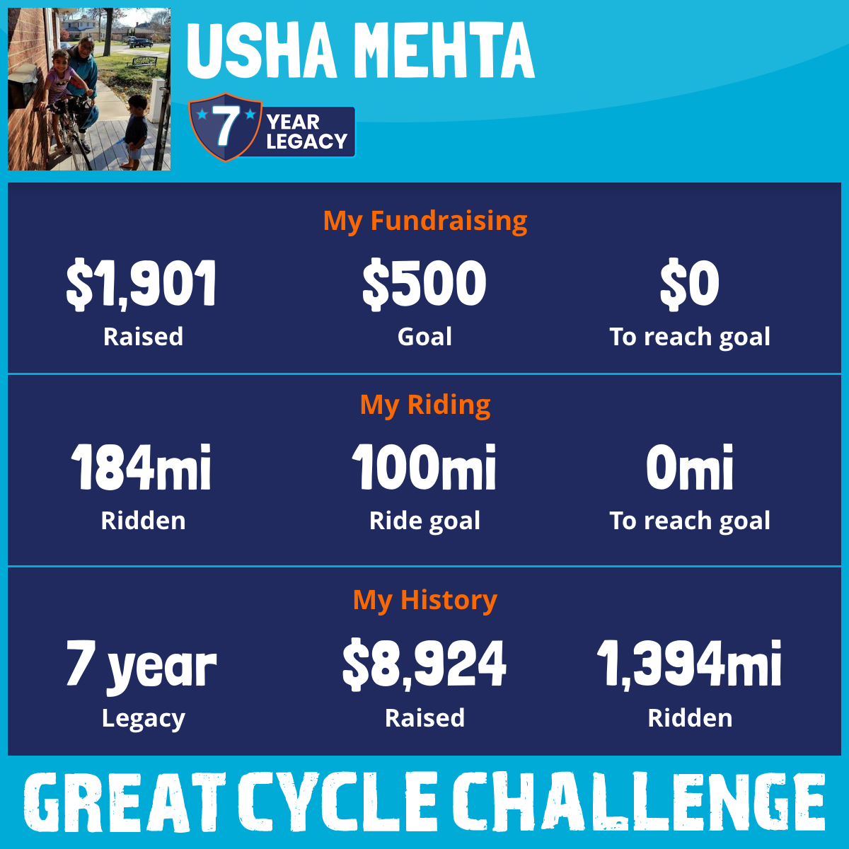 184 mi Ridden$1,901 Raised2025