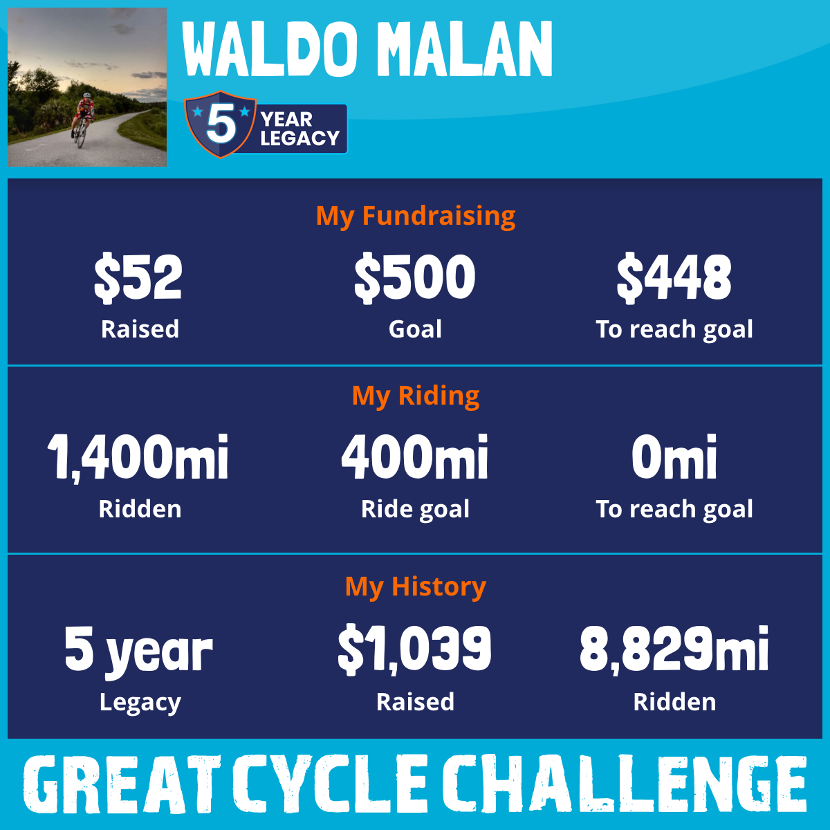 1,400 mi Ridden$52 Raised2025