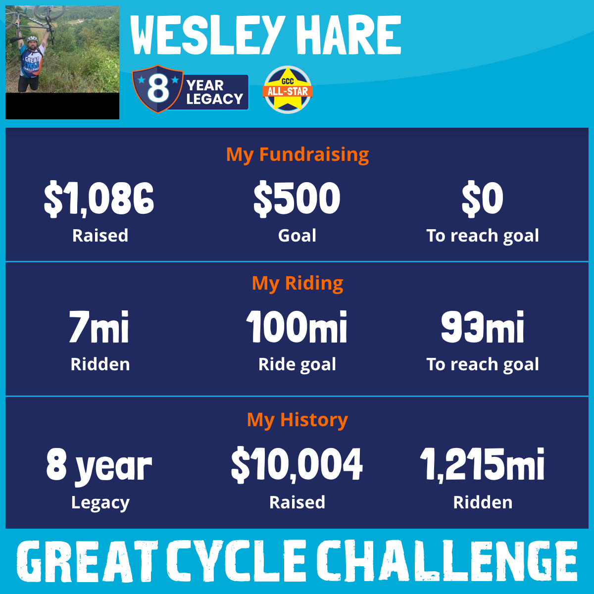 151 mi Ridden$1,255 Raised2022