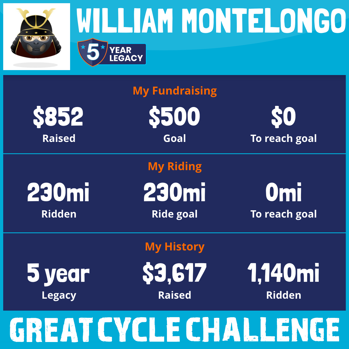 230 mi Ridden$852 Raised2025