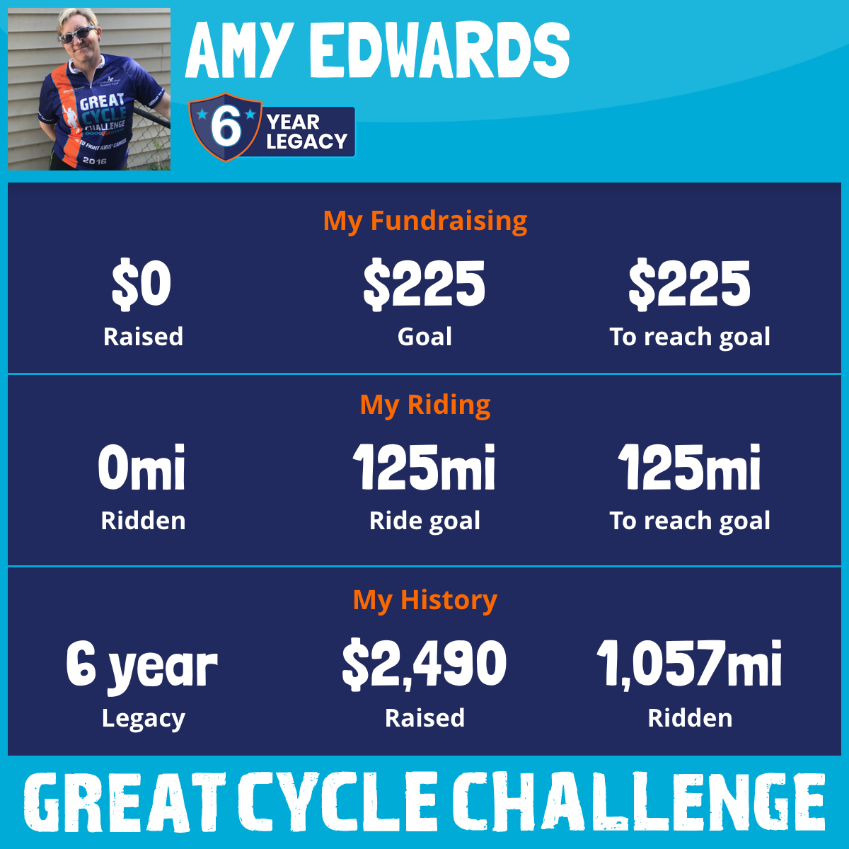 I am riding 125 mi to fight kids' cancer and save little lives. Please sponsor me to support my challenge!