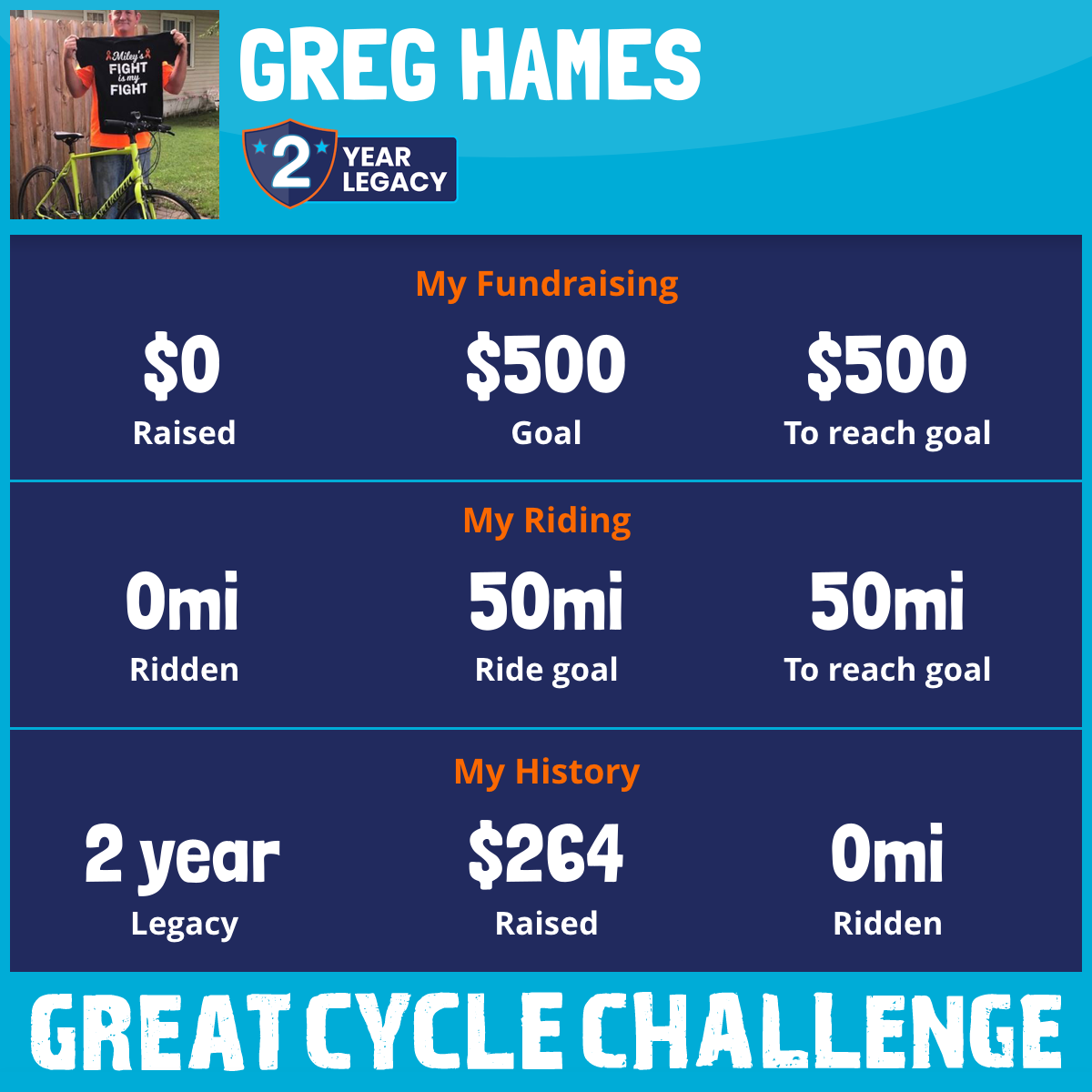 I am riding 50 mi to fight kids' cancer and save little lives. Please sponsor me to support my challenge!