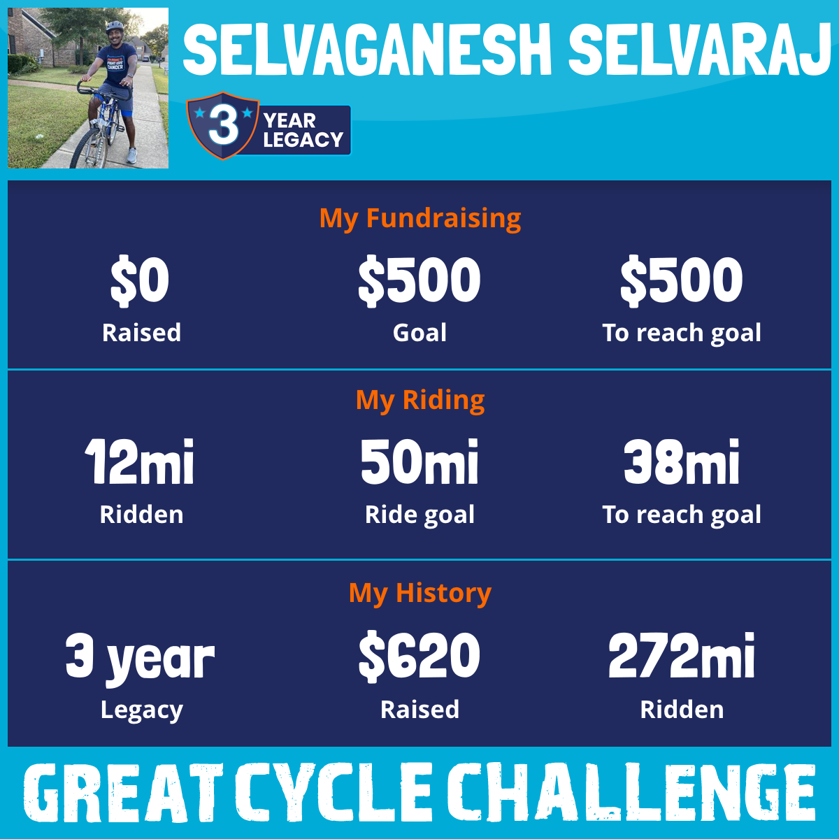 I am riding 50 mi to fight kids' cancer and save little lives. Please sponsor me to support my challenge!